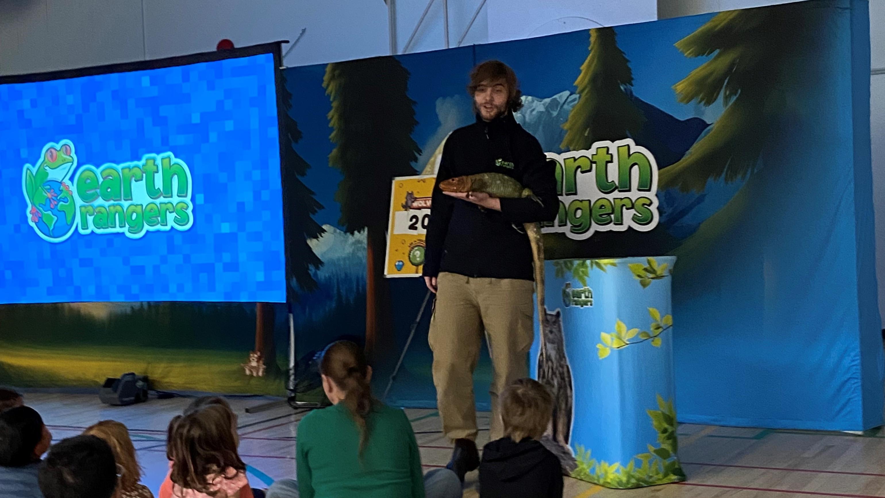 Earth Rangers Assembly – We finished the week with an entertaining presentation by the Earth Rangers. This presentation was an interactive way to inform students about animal conservation and protection of wildlife. There was a game show, a hologram host, and live animals! Students were very engaged in the presentation and demonstrated how much they already knew about many animals. Some classes are extending their learning into ecosystems, habitats and independent studies on an environmental topic of their choice.