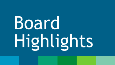 Dark blue rectangle with green and blue colour bar at the bottom, with "Board Highlights" in white text